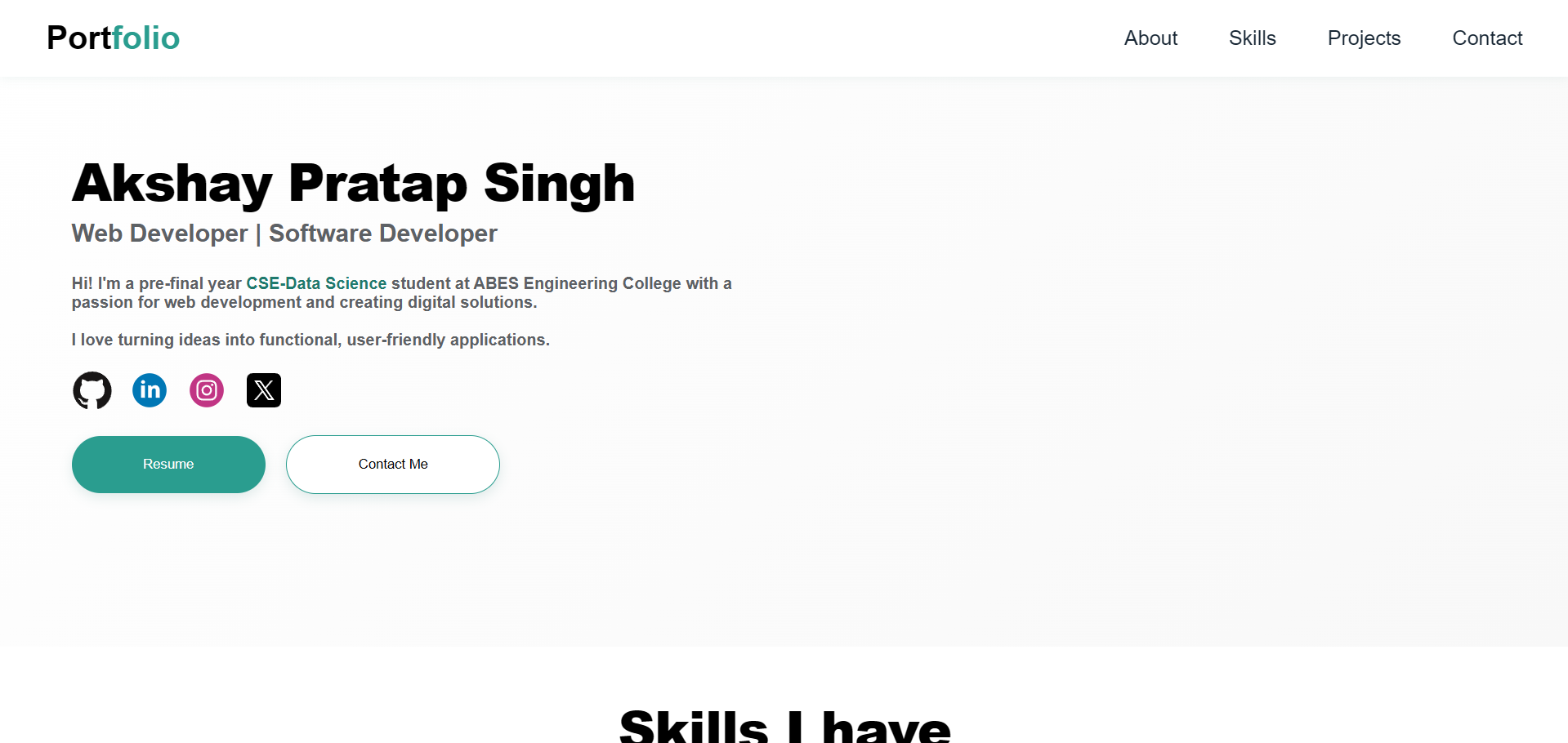 Personal portfolio website showcasing my projects and skills. Built with HTML, CSS, and JavaScript, featuring responsive design, smooth animations, and an intuitive user interface.